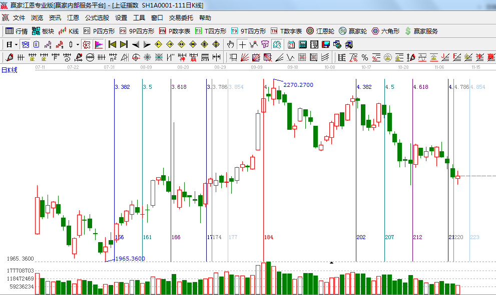 ★依據贏家江恩系統(tǒng)波段百分比延伸提示:黃金分割價格圖0.5位置是2090,0.618位置是2035;