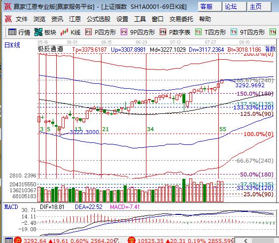周二大盤高開高走再創(chuàng)近期新高直奔3300點(diǎn),漂亮50帶動(dòng)滬指上攻,創(chuàng)業(yè)板尾盤回升,幾大指數(shù)均小漲。板塊方面,保險(xiǎn)、石油、券商和銀行等權(quán)重漲幅居前,煤炭、有色和鋼鐵領(lǐng)跌;題材方面,雄安概念領(lǐng)漲,鋰電和部分化工漲價(jià)概念表現(xiàn),鈦金屬、稀土永磁和石墨烯下跌,個(gè)股漲跌互現(xiàn)成交量較前日略有萎縮。技術(shù)方面,滬指日線強(qiáng)攻收盤站上江恩百分比240度(3287點(diǎn))和極反通道外軌線3288點(diǎn)上,依據(jù)工具規(guī)則,進(jìn)入強(qiáng)勢通道后震蕩幅度會加大,處于低位的創(chuàng)業(yè)板或?qū)⒂瓉矶叹€操作機(jī)會,策略保持波段、短線配合操作,倉位保持在5成,3282、3274為日內(nèi)支撐,3301、3308為日內(nèi)阻力,僅供參考,不構(gòu)成任何投資建議。