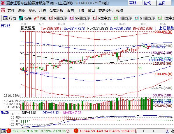 周三大盤低開震蕩收帶長(zhǎng)下影線的陰線,深強(qiáng)滬弱,深市幾大指數(shù)全線小漲,創(chuàng)業(yè)板沖高回落。板塊方面,煤炭、食品、釀酒、有色、鋼鐵和家電藍(lán)籌領(lǐng)漲,銀行、券商和保險(xiǎn)大金融領(lǐng)跌;題材方面,稀土永磁、小金屬漲價(jià)概念強(qiáng)勢(shì),豬肉、軍工及開板新股領(lǐng)跌,個(gè)股漲跌互現(xiàn)成交量萎縮。技術(shù)方面,滬指日線江恩百分比240度3288點(diǎn)依然是盤中反抽阻力,短周期60分鐘生命線3264點(diǎn)如失守,則將引導(dǎo)小周期15、30和日線下探,依據(jù)工具規(guī)則,極反通道日線生命線有望止跌,8月中下旬不易頻繁交易,等待安全的參與信號(hào),倉(cāng)位控制在4成以內(nèi),3264、3250為日內(nèi)支撐,3288、3300為日內(nèi)壓力。僅供參考,不構(gòu)成任何投資建議。