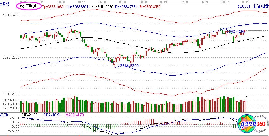 【贏家江恩點評:極反通道工具可幫助用戶解決大盤或個股趨勢判斷、價格買賣點,在日內(nèi)差價高拋低吸方面更能提示其優(yōu)勢。】