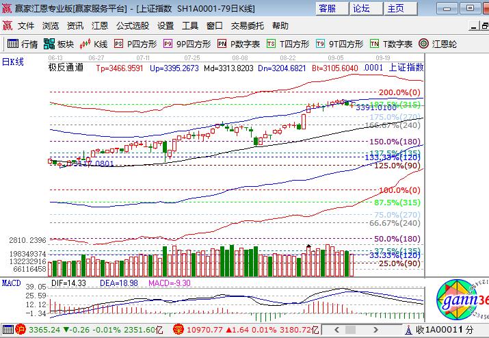上周五滬指低開震蕩收縮量十字星,早盤沖高后回落尾盤收復,深成指和中小板指數(shù)微漲,創(chuàng)業(yè)板則小跌。板塊方面,造紙、有色煤炭漲幅居前,釀酒、家電和鋼鐵板塊領跌;題材方面,基因、生物疫苗、鋰電、次新、中報高送轉局部活躍,人工智能和雄安領跌,個股漲跌互現(xiàn),上漲個股數(shù)略多,成交量較前幾日持續(xù)萎縮。技術方面,滬指日K線上沖極反通道強勢外軌線受阻后回落,江恩百分比315度也未能守住,短期15、30分鐘進入弱勢通道,本周將分別考驗60、120分鐘生命線,在60分鐘震蕩后在120分鐘止跌的概率較大,同時應對到日線江恩百分比270度3320附近,屆時配合時間周期開始做倉位的回補,波段倉位控制在4成,短線倉2成,3350、3340為日內支撐,3376、3383為日內壓力。僅供參考,不構成任何投資建議。