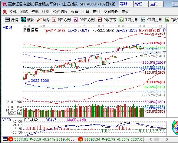 周四滬市低開震蕩回落收陰,深市幾大指數(shù)跌幅更大,其中創(chuàng)業(yè)板大跌1%。板塊方面,銀行和保險板塊大漲,家電和石油收紅,有色、煤炭、地產(chǎn)、鋼鐵等板塊領(lǐng)跌;題材方面,5G、芯片、次新及中報高送轉(zhuǎn)概念等局部表現(xiàn),稀土永磁、黃金、鋰電、人工智能和石墨烯領(lǐng)跌,個股下跌居多,成交量較前日略微放大。技術(shù)方面,滬指日K線受江恩百分比315度盤中壓力遇阻回落,在極反通道生命線與外軌線懸空位置震蕩,短周期15、30、60分鐘圍繞生命線上下震蕩,今日盤中預(yù)計將試探120分鐘生命線,此位置也是自9月初以來預(yù)判回撤的目標(biāo)位,此位置可以擊穿,回補缺口后再次修整各周期關(guān)系,波段倉位控制在4成,短線倉2成,3345、3330為日內(nèi)支撐,3385、3370為日內(nèi)壓力。僅供參考,不構(gòu)成任何投資建議。