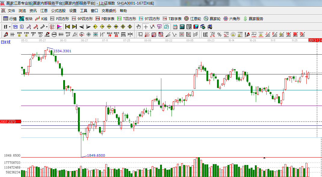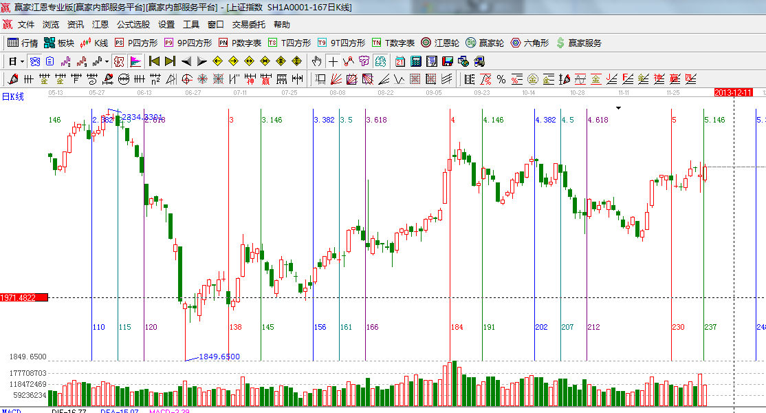 ☆依據(jù)贏家江恩系統(tǒng)波段百分比延伸提示:2444與1849點(diǎn)做黃金分割價格圖,0.382位置是2217點(diǎn),下方支撐為0.5位置2150,上方拋壓在前期頭部2265附近;