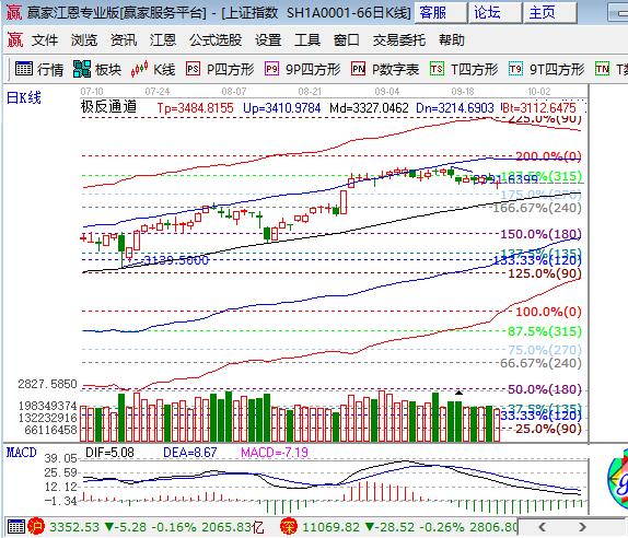 上周五滬市低開震蕩縮量小跌收長下影,深成指和中小創(chuàng)均有不同下跌,但跌幅相對較小。板塊方面,家電、保險(xiǎn)、銀行和釀酒等板塊逆市上漲,有色、鋼鐵和化工領(lǐng)跌;題材方面,5G和次新表現(xiàn)強(qiáng)勢,軟件、石墨烯、互聯(lián)網(wǎng)金融和雄安表現(xiàn)較弱,芯片、新能源汽車上漲分化,個(gè)股跌多漲少成交量萎縮。技術(shù)方面,滬指日K線逐漸向極反通道生命線靠攏,下方缺口僅剩3個(gè)點(diǎn)未回補(bǔ),長遠(yuǎn)看回補(bǔ)缺口回踩生命線對未來上漲不留下心理隱患,短周期15、30、60在生命線下弱勢運(yùn)行,120分鐘按預(yù)期回踩,江恩百分比270度是3325點(diǎn),基本于日線極反通道生命線在同一區(qū)域,本周是國慶長假最后一個(gè)交易周,資金會相對規(guī)避,如周中有下探從中長線角度則是回補(bǔ)9月初減倉籌碼的機(jī)會,波段倉位控制在4成,短線倉2成,3345、3330為日內(nèi)支撐,3365、3370為日內(nèi)壓力。僅供參考,不構(gòu)成任何投資建議。