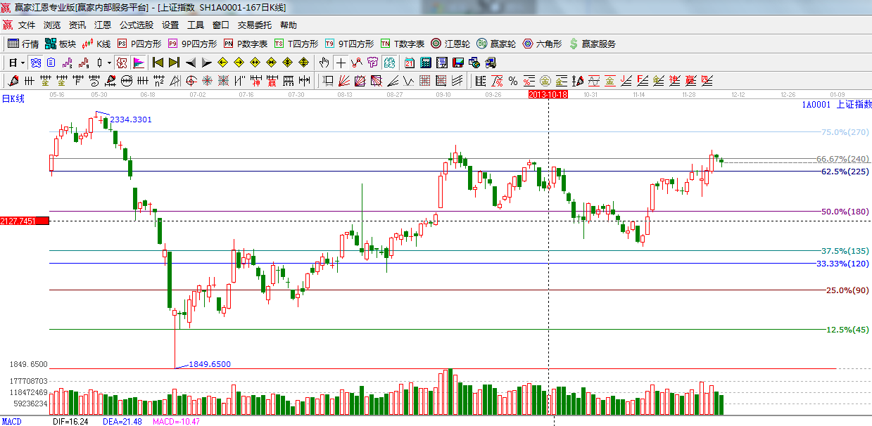 ☆依據(jù)贏家江恩系統(tǒng)波段百分比提示:62.5%與66.67%形成震蕩帶,此區(qū)間以上則短線、波段持股,跌破則減倉(cāng);