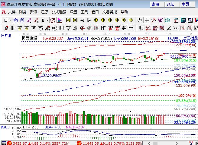 大盤上周五震蕩小漲報(bào)收五連陽(yáng),深市幾大指數(shù)均上漲。板塊方面,保險(xiǎn)、釀酒和家電等板塊領(lǐng)漲,煤炭、石油和銀行板塊領(lǐng)跌;題材方向 ,芯片、5G、太陽(yáng)能及高送預(yù)期類次新引領(lǐng)題材,高鐵、雄安和環(huán)保等較弱,個(gè)股漲跌互現(xiàn),下跌個(gè)股略多于上漲家數(shù),幾大指數(shù)成交量均走穩(wěn)步放量過(guò)程。技術(shù)方面,滬指日線回踩江恩百分比零度3420后拉升,此線目前多方占優(yōu)勢(shì),上方拋壓為極反通道強(qiáng)勢(shì)外軌線處,各短周期在生命線與外軌線懸空位置,向上看外軌線,向下震蕩則是日線零度位。深成指率先突破強(qiáng)勢(shì)外軌線,創(chuàng)業(yè)板突破生命線,但對(duì)應(yīng)的周線均遇到阻力,預(yù)期震蕩為主,幾大指數(shù)配合節(jié)奏較好。波段倉(cāng)位為5成,短線保持2成,3410、3420為日內(nèi)支撐,3442、3446為日內(nèi)壓力。僅供參考,不構(gòu)成任何投資建議。