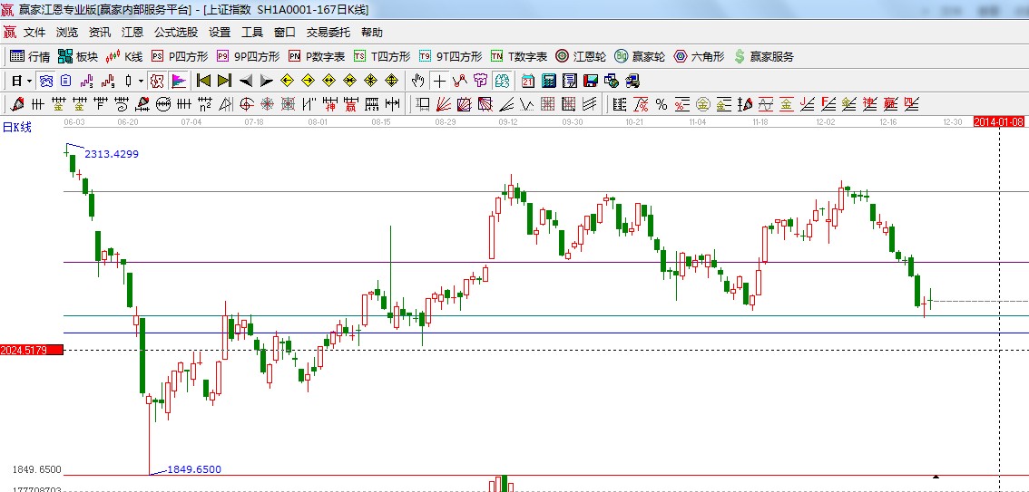 ★依據(jù)贏家江恩系統(tǒng)波段百分比提示:1849點(diǎn)與2444點(diǎn)做分析,下方135度是2072點(diǎn)、120度是2040附近;