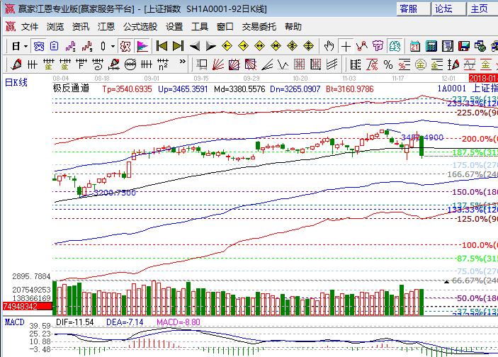 滬指黑周四大盤低開低走一陰吞三陽大跌2.29%,深市更弱,深市幾大指數(shù)均暴跌3%以上,主要是前期白馬股殺跌。板塊皆墨,有色、石油、銀行相對抗跌,家電、半導(dǎo)體、食品、釀酒和保險等領(lǐng)跌;題材方面,超跌股和少數(shù)芯片股局部表現(xiàn),安防、太陽能、蘋果、基因、人工智能和次新等領(lǐng)跌,個股普跌,跌停板21家,跌幅6%以上企業(yè)近200家,成交量連續(xù)四天放大。技術(shù)方面,滬指日線跌破極反通道生命線及江恩百分比315度3370點進入弱勢區(qū)域,下方百分比線270度是3319點,短周期重回弱勢外軌線,僅15分鐘K線在弱勢外軌線附近,其它周期在生命線與弱勢外軌線懸空位置,在回探中預(yù)計下周有望形成周期共振。深成指破生命線,創(chuàng)業(yè)板反抽生命線無效中陰下行,進入今年5月份的平臺后有望減速。倉位的調(diào)整參考工具相對應(yīng)的60、日線生命線,波段倉保持在4成,短線休息,3340、3330為日內(nèi)支撐,3361、3370為日內(nèi)壓力。僅供參考,不構(gòu)成任何投資建議。