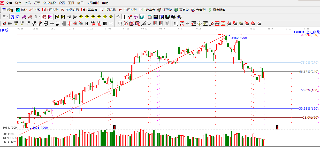 江恩看盤綜述:依據(jù)贏家江恩技術(shù)工具分析得出:周三,滬指探底回升,收復(fù)了30分極反通道生命線,60分生命線3306點(diǎn)依然是面臨的壓力位。當(dāng)前成交量仍是指數(shù)走勢的關(guān)鍵。如沒有增量資金入場,這里還是震蕩趨弱的走勢概率較大,上方阻力關(guān)注3306點(diǎn),3342點(diǎn)附近,操作上,倉位控制在5成之下,切勿盲目追漲,重點(diǎn)以超跌股反彈的交易性機(jī)會為主。