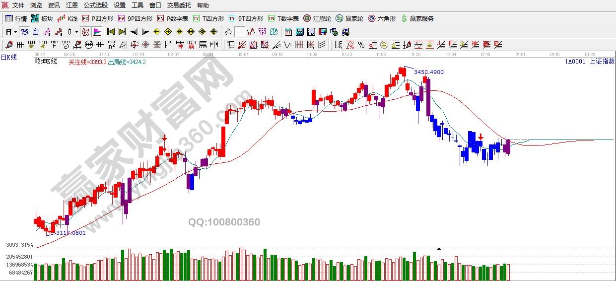 ☆依據(jù)贏家江恩理論系統(tǒng)乾坤K線提示:出現(xiàn)紫色警示k線,收盤價(jià)在關(guān)注線之上,依據(jù)規(guī)則,k先如能繼續(xù)向上突破紅色關(guān)注線,并出現(xiàn)紅色k線,將意味著整體趨勢(shì)轉(zhuǎn)強(qiáng)。