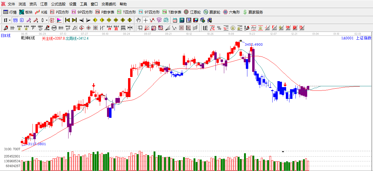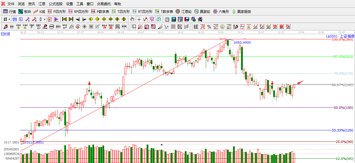 江恩看盤綜述:依據(jù)贏家江恩技術(shù)工具分析得出:周五,指數(shù)震蕩走高,尾盤收復(fù)3305點(diǎn)關(guān)鍵位置,是一個(gè)好的信號(hào),但美中不足的是量能同比萎縮,接下來繼續(xù)關(guān)注3305點(diǎn)突破的有效性。如新年第一個(gè)交易日,如能繼續(xù)保持在3305點(diǎn)之上,指數(shù)有望繼續(xù)看高日線生命線3342點(diǎn)附近。不然繼續(xù)保持謹(jǐn)慎,操作上,繼續(xù)控制倉(cāng)位的前提下,重點(diǎn)關(guān)注成長(zhǎng)性良好有業(yè)績(jī)支撐的小盤股。