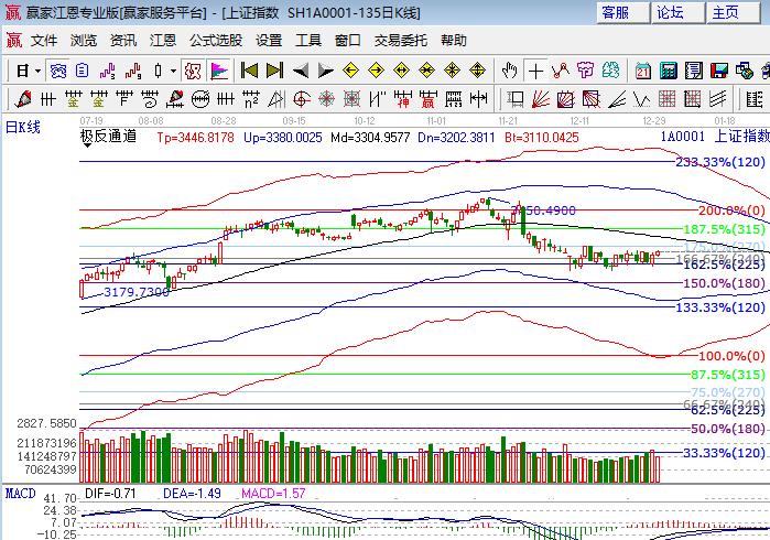 滬指上周五震蕩小漲,權(quán)重操控全天處于經(jīng)盤狀態(tài),深市幾大指數(shù)走勢相對(duì)強(qiáng)于滬指。板塊方面,地產(chǎn)、銀行領(lǐng)漲貢獻(xiàn)最大,周四表現(xiàn)的白馬股保險(xiǎn)、釀酒等領(lǐng)跌;題材方面,芯片、蘋果、維生素概念領(lǐng)漲,次新、高送轉(zhuǎn)概念較弱,個(gè)股上漲居多但分化依然嚴(yán)重,成交量較前日萎縮。技術(shù)方面,滬指17年收官K線走勢不錯(cuò),周、月K線都在極反通道生命線上,日線維持在江恩百分比225度與270度3272點(diǎn)、3320區(qū)間震蕩,短周期15、30、60分鐘在生命線上附近運(yùn)行,15分鐘外軌線與百分比270度在同一位置,盤中上攻時(shí)注意此位置壓力,本周已然是周線的時(shí)間點(diǎn),向上重點(diǎn)看日線生命線,持股心態(tài)漲不喜跌不悲。上證50關(guān)注日線生命線2850點(diǎn)得失,創(chuàng)業(yè)板120度與135度構(gòu)造平臺(tái)。操作策略上波段4成倉持股不動(dòng),3288、3272為日內(nèi)支撐,3308、3321為日內(nèi)壓力。僅供參考,不構(gòu)成任何投資建議。