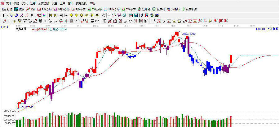 ☆依據(jù)贏家江恩理論系統(tǒng)極反通道提示:周二,滬指高開高走,直接拉升至日線生命線,接下來(lái),關(guān)注生命線的爭(zhēng)奪,生命線價(jià)格是3345點(diǎn)。依據(jù)規(guī)則,日線生命線之上波段看多,之下短期弱勢(shì)震蕩為主。