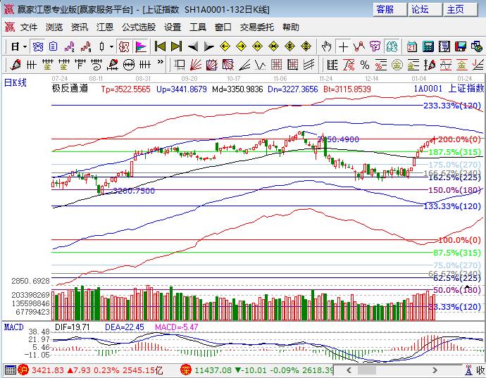 周三滬指低開震蕩延續(xù)小漲且呈現(xiàn)九連陽走勢,早盤震蕩上攻,午盤出現(xiàn)一波回調(diào)在權(quán)重帶動下又收復(fù),深市幾大指數(shù)均下跌。板塊方面,石油、銀行權(quán)重大漲,保險及周期股鋼鐵、有色、化工走弱;題材方面,區(qū)塊鏈和天然氣引領(lǐng)概念股,石墨烯、豬肉、量子通信、鋰電、芯片和5G概念跌幅靠前,個股下跌居多成交量較周三略有增加。技術(shù)方面,滬指日K線收在江恩百分比2倍零度位3418點上方,未來幾天還將圍繞此線反復(fù),MACD最高柱子已確立,已連續(xù)兩天提示短線可做高拋。昨日午盤脈沖式下行在近段時間還會出現(xiàn),預(yù)計極別會越來越大,日線前高及極反通道外軌線是強壓力,短周期30分鐘回踩生命線的動作還在持續(xù)中。創(chuàng)業(yè)板指江恩百分比180度1780位置不破慢慢修復(fù)將收復(fù)生命線,上證50進入前期頭部后橫盤可微調(diào)等待均線跟隨。倉位中長線4成倉持股不動,短線倉3成高拋后等待再次出手信號,暫定60分鐘生命線為下次信號買點,3395、3385為日內(nèi)支撐,3424、3433為日內(nèi)壓力。僅供參考,不構(gòu)成任何投資建議。