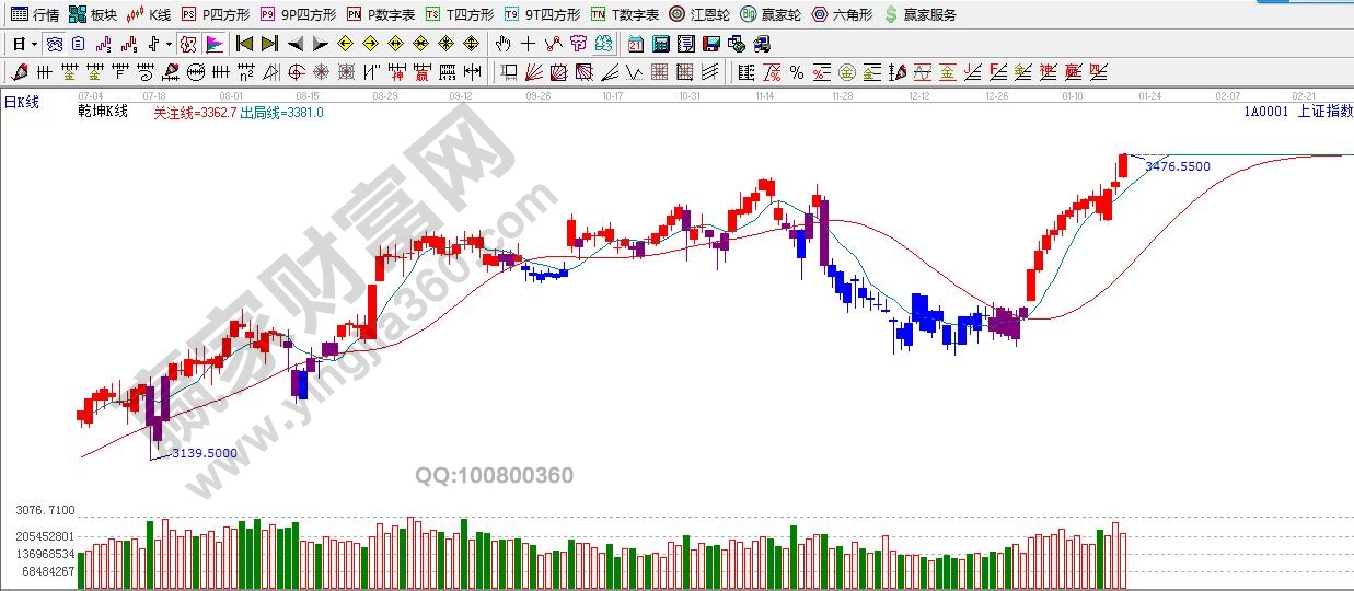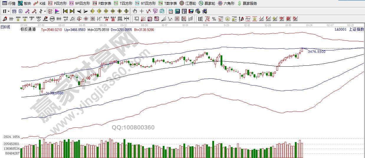 ☆依據(jù)贏家江恩理論系統(tǒng)極反通道提示:滬指繼續(xù)強(qiáng)勢上攻,觸及日線藍(lán)色外軌線,依據(jù)規(guī)則,藍(lán)色外軌線短期會有一定的拋壓,短期注意一下,藍(lán)色外軌線震蕩情況出現(xiàn)。