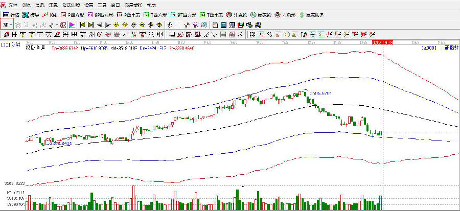 江恩看盤綜述:依據(jù)贏家江恩技術(shù)工具分析得出:周四,滬深指數(shù)繼續(xù)大幅殺跌,各短周期走勢(shì)均觸及藍(lán)色下軌線后,承接資金開(kāi)始小幅涌現(xiàn),市場(chǎng)轉(zhuǎn)入弱勢(shì)整理。依據(jù)極反通道物極必反規(guī)則,滬深指數(shù)短周期藍(lán)色線支撐附近應(yīng)該有超跌反彈機(jī)會(huì),百分比支撐繼續(xù)關(guān)注180度3420的支撐。短線繼續(xù)耐心等待指數(shù)見(jiàn)底反彈的信號(hào)。反抽阻力關(guān)注225度3462點(diǎn),240度3476點(diǎn)附近,操作上,鑒于近期殺跌的主力都是業(yè)績(jī)或虧損的,所以目標(biāo)可重點(diǎn)關(guān)注業(yè)績(jī)支撐且具有估值優(yōu)勢(shì)的標(biāo)的。