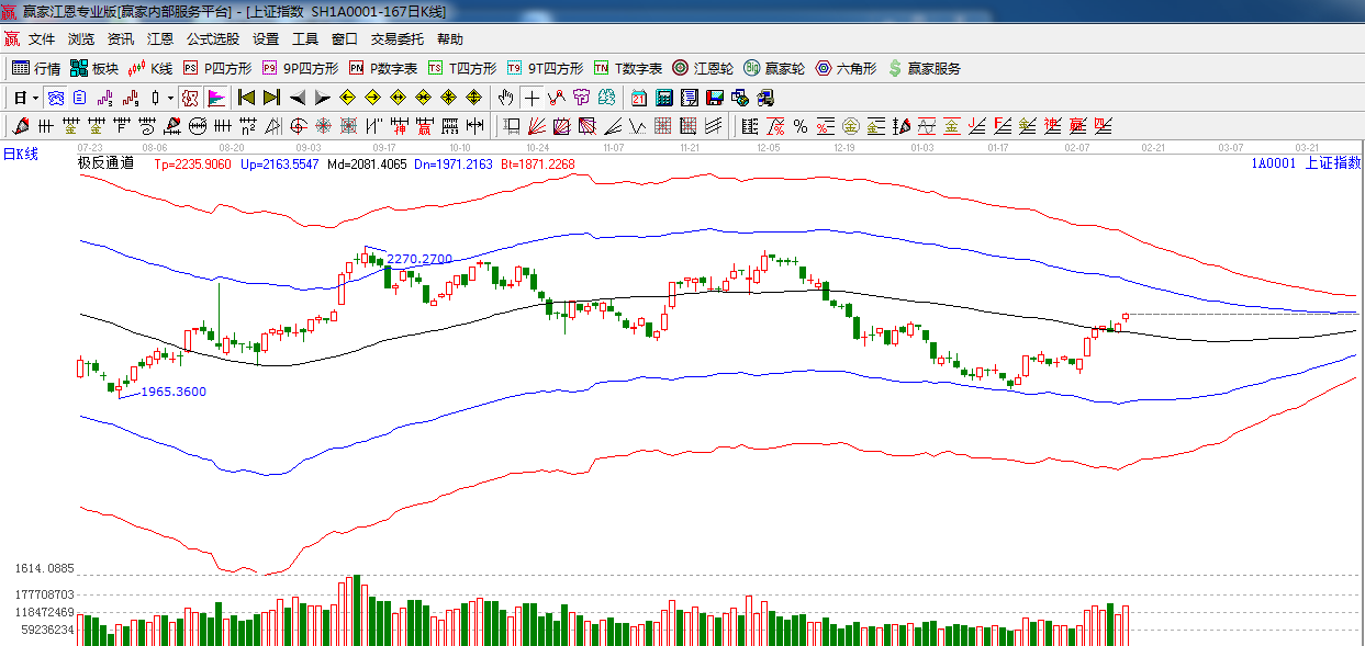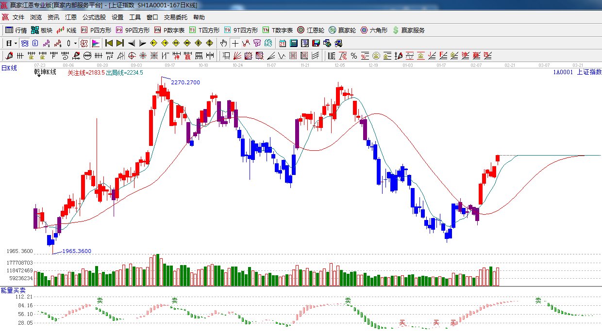 ★依據(jù)贏家江恩系統(tǒng)極反通道提示:今日圍繞日線生命線窄幅震蕩后,今日再次跳空上行,量能較昨日放大,江恩阻力位2150點。