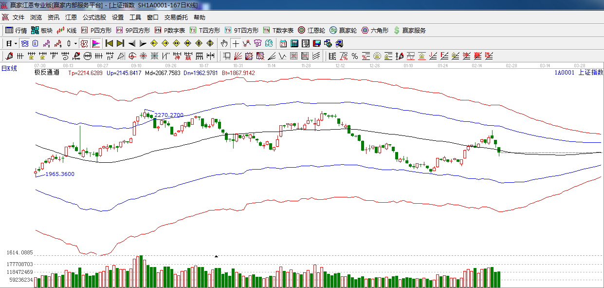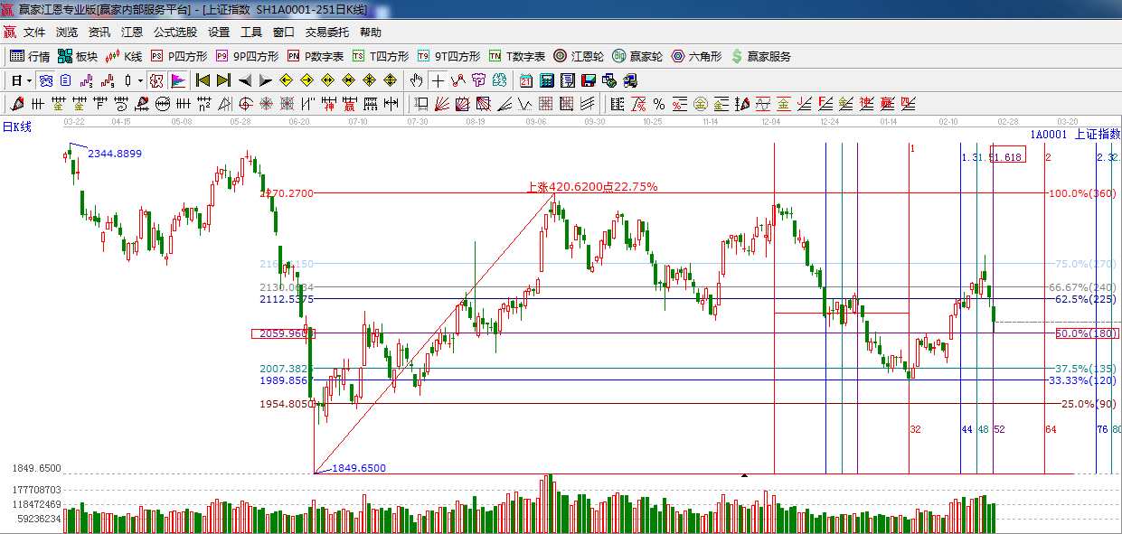 綜上所述:依據(jù)贏家江恩技術(shù)工具分析得出:昨日在房地產(chǎn)的利空打壓下,指數(shù)失守生命線,短期弱勢,最終在江恩180度位置止跌(1849-2270波段),預(yù)計(jì)明日將圍繞此支撐震蕩整理,關(guān)注極反通道生命線的爭奪,上線則整體上升趨勢不變,繼續(xù)破線下行,調(diào)整時(shí)間將進(jìn)一步加長,操作上,結(jié)合情況適當(dāng)降低倉位,謹(jǐn)慎為主。星級風(fēng)險(xiǎn)提示,謹(jǐn)慎看多。