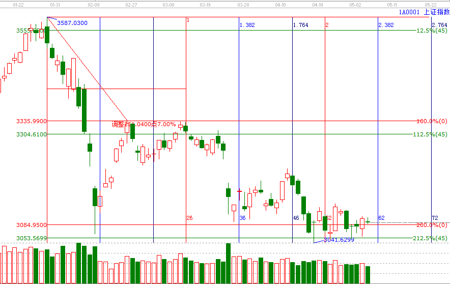 滬指日線突破下降趨勢線,圍繞江恩百分比零度位3097點震蕩,下周時間窗方向選擇需有量能配合,行情才有持續(xù)性和力度,當前短周期在生命線附近震蕩,關注好市場動向,向上看高至45度3154點,下方315度3040點支撐不破繼續(xù)做平臺