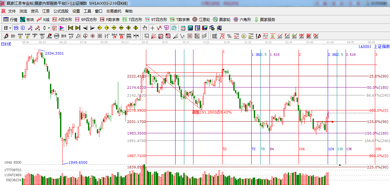 ☆依據(jù)贏家江恩系統(tǒng)黃金時間周期線提示:24號時間之窗突破站上生命線,上方強(qiáng)阻力2078點,留意后期量能變化。