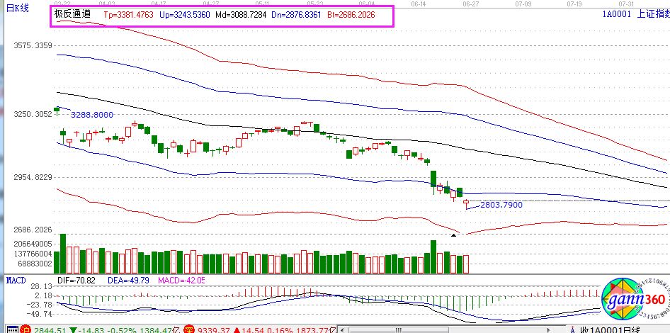 滬指跌0.52%,報(bào)收2844點(diǎn);深成指漲0.16%,報(bào)收9339點(diǎn);創(chuàng)業(yè)板漲1.71%,報(bào)收1564點(diǎn)。從盤(pán)面上看,數(shù)字中國(guó)、國(guó)產(chǎn)軟件、鈦白粉、網(wǎng)絡(luò)安全、工業(yè)互聯(lián)網(wǎng)、語(yǔ)音技術(shù)、芯片等板塊漲幅居前;機(jī)場(chǎng)航運(yùn)、水泥、煤炭、銀行、房地產(chǎn)、租售同權(quán)等板塊跌幅居前。滬股通凈流入16億,深股通凈流入10億。相應(yīng)的極反通道指標(biāo)的支撐壓力提示,如下圖所示: