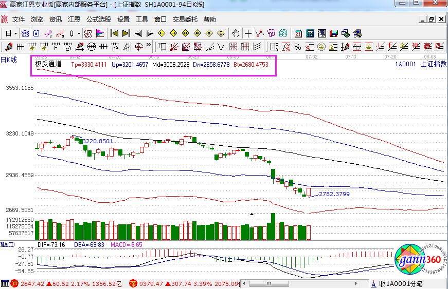 滬指漲2.17%,報收2847點;深成指漲3.39%,報收9379點;創(chuàng)業(yè)板漲4.08%,報收1606點。從盤面上看,國產(chǎn)軟件、網(wǎng)絡安全、云計算、半導體、分散染料、數(shù)字中國、工業(yè)互聯(lián)網(wǎng)等板塊漲幅居前。相應的極反通道指標的支撐壓力提示,如下圖所示:
