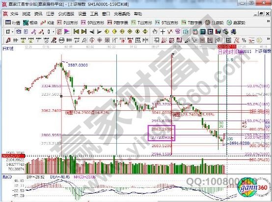 ★依據(jù)贏家江恩理論系統(tǒng)極反通道提示:月線和周線都已經(jīng)跌至極反通道藍(lán)線重要支撐2700附近,不破藍(lán)線則按照規(guī)則,反彈空間看高生命線。日線周期服從大周期走勢(shì),在2700附近展開反彈,今日拉回藍(lán)線2800,明后天繼續(xù)關(guān)注藍(lán)線收復(fù)的有效性,站穩(wěn)藍(lán)線,則反彈空間打開到上方的生命線。日內(nèi)周期看2820為60分鐘生命線壓力,短線2800-2820為壓力區(qū),預(yù)計(jì)此區(qū)間短線將有反復(fù)。