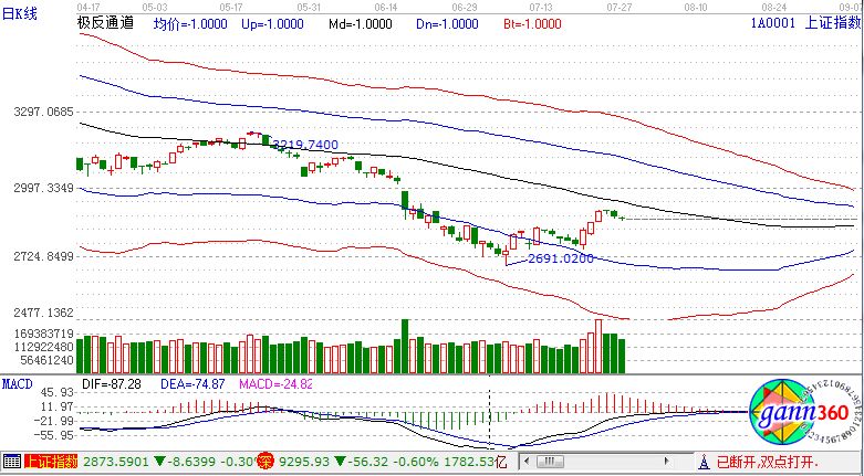 從盤面上看,鋼鐵、深圳國資改革、西藏、自由貿(mào)易港、白酒、食品飲料等板塊漲幅居前;無人零售、區(qū)塊鏈、數(shù)字中國、移動支付、網(wǎng)絡安全、國產(chǎn)軟件等板塊跌幅居前。滬股通凈流入21億,深股通凈流入5億。詳細的分析如下:相應的極反通道指標的支撐壓力提示,如下圖所示: