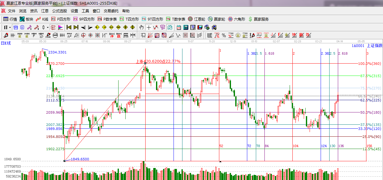 綜上所述:依據(jù)贏家江恩技術(shù)工具分析得出,日線時(shí)間窗口,大盤放量中陽(yáng)回補(bǔ)前期缺口,按照技術(shù)形態(tài)來看,大盤已經(jīng)運(yùn)行到1974點(diǎn)上來的第五小浪,而且,市場(chǎng)權(quán)重和各板塊之間存在分歧,預(yù)計(jì)明日小幅沖高后回落強(qiáng)勢(shì)整理為主。操作上,倉(cāng)位控制5成左右,星級(jí)風(fēng)險(xiǎn)提示:謹(jǐn)慎看多。