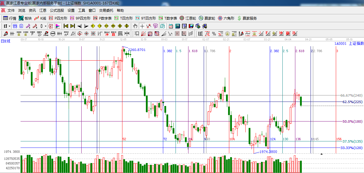 ☆依據(jù)贏家江恩系統(tǒng)黃金時(shí)間周期線提示:下一時(shí)間窗口4月22日,23日。