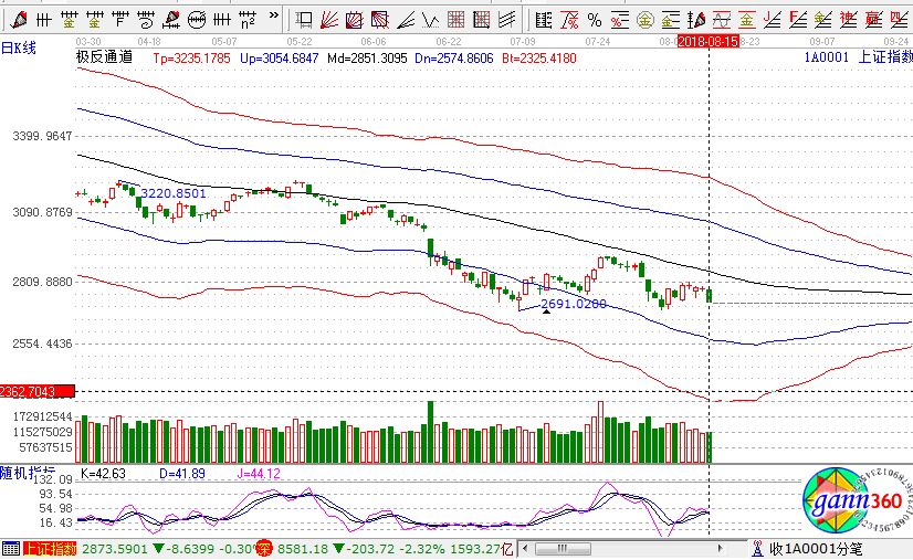 滬指跌2.07%,報2723點;深成指跌2.32%,報8581點;創(chuàng)業(yè)板指跌2.63%,報1478點。從盤面上看,啤酒、水泥、白酒、草甘膦、在線旅游、互聯(lián)網(wǎng)保險、新疆振興、物流等板塊跌幅居前。滬股通凈流出7.8億,深股通凈流出6.3億。相應(yīng)的極反通道指標的支撐壓力提示,如下圖所示: