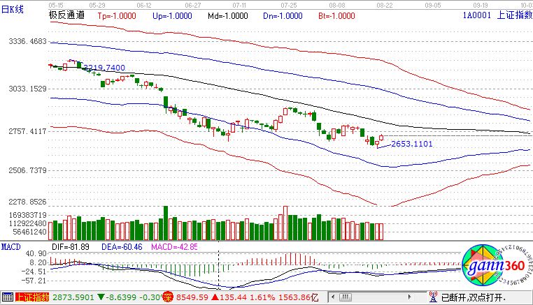 截至收盤,滬指漲1.31%,報(bào)2733點(diǎn);深成指漲1.60%,報(bào)8549點(diǎn);創(chuàng)業(yè)板指漲1.48%,報(bào)1456點(diǎn)。從盤面上看,醫(yī)藥電商、機(jī)場航運(yùn)、造紙、白酒、食品飲料、ST板塊等板塊上漲;高送轉(zhuǎn)、鋼鐵、碳纖維等少數(shù)板塊下跌。滬股通凈流入18億,深股通凈流入11億。相應(yīng)的極反通道指標(biāo)的支撐壓力提示,如下圖所示: