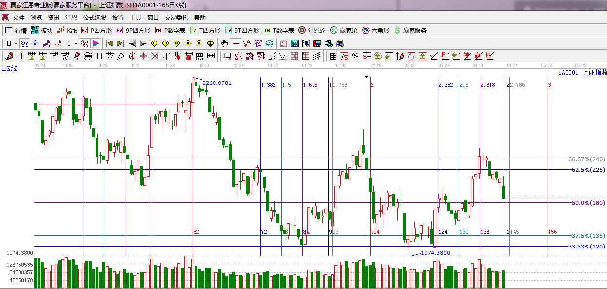 ☆依據(jù)贏家江恩系統(tǒng)黃金時(shí)間周期線提示:本周時(shí)間窗口4月22日,23日。