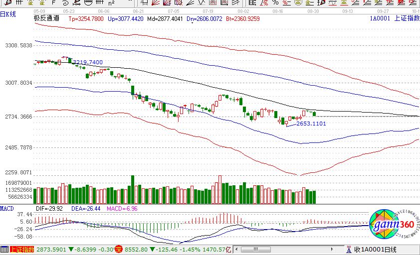 滬指跌1.14%,報收2737點;深成指跌1.45%,報收8552點;創(chuàng)業(yè)板跌1.57%,報收1457點。從盤面上看,化工新材料、天津自貿(mào)區(qū)、高送轉(zhuǎn)、北汽新能源、白色家電、電力改革等板塊跌幅居前。滬股通凈流入6.4億,深股通凈流入3億。相應(yīng)的極反通道指標(biāo)的支撐壓力提示,如下圖所示: