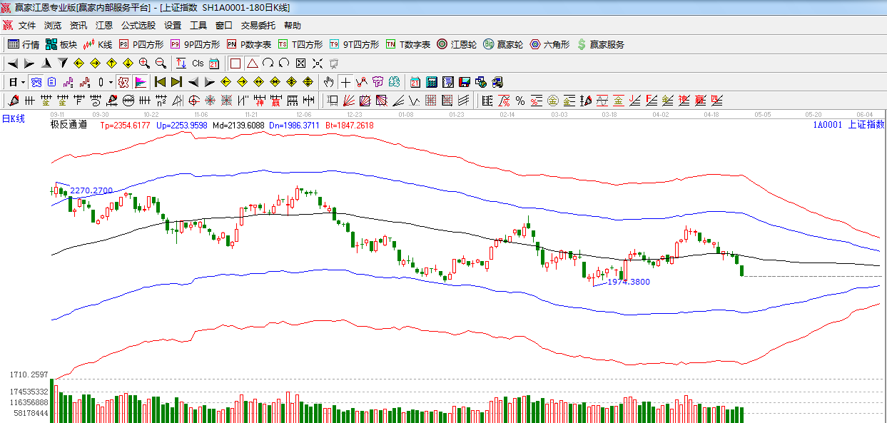 ☆依據(jù)贏家江恩系統(tǒng)極反通道提示:生命線之下,趨勢弱勢,看空,短期支撐1984附近。