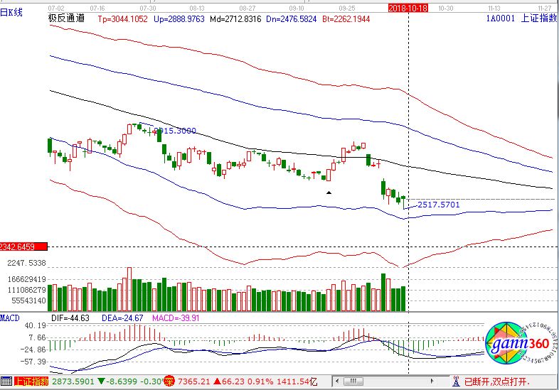 受歐美股市大漲提振,三大股指早盤全線高開,隨后一路震蕩走低,滬指盤中再創(chuàng)新低,午后在芯片、軟件等科技板塊帶動(dòng)下,股指探底回升,兩市仍有30只個(gè)股跌停,康美藥業(yè)、中國(guó)國(guó)旅、京新藥業(yè)等一批高位強(qiáng)勢(shì)股全線大跌。從盤面上看,國(guó)產(chǎn)軟件、網(wǎng)絡(luò)安全、芯片、知識(shí)產(chǎn)權(quán)保護(hù)、區(qū)塊鏈等板塊領(lǐng)漲;油改、頁(yè)巖氣、草甘膦、天然氣、自由貿(mào)易港等板塊領(lǐng)跌。滬指上漲0.6%,報(bào)收2561點(diǎn);深成指上漲0.91%,報(bào)收7365點(diǎn);創(chuàng)業(yè)板上漲1.25%,報(bào)收1231點(diǎn)。相應(yīng)的極反通道指標(biāo)的支撐壓力提示,如下圖所示: