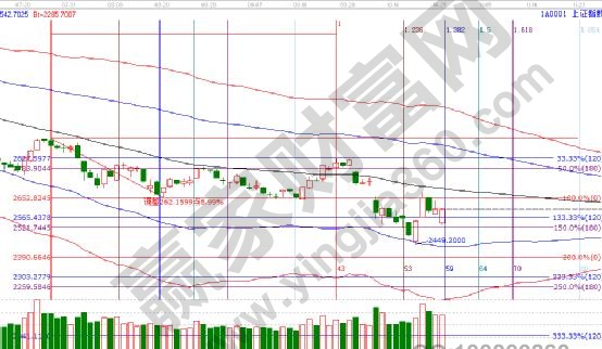 通過(guò)江恩理論系統(tǒng)趨勢(shì)、時(shí)間、價(jià)格工具綜合評(píng)判市場(chǎng)二星看多(五星評(píng)級(jí)標(biāo)準(zhǔn))。周四市場(chǎng)低開在15分鐘藍(lán)線關(guān)鍵位置后止跌反彈,截止收盤反彈至生命線壓力2610附近,此位置同時(shí)也是60分鐘生命線位置、也是江恩四方圖中的270度位置,則周五應(yīng)重點(diǎn)關(guān)注2610一線,強(qiáng)勢(shì)突破則繼續(xù)看高2680一線,反之,仍將回落洗盤。操作上,日線股指仍處于生命線下弱勢(shì)區(qū),整體倉(cāng)位嚴(yán)格控制在3-5成,激進(jìn)客做好風(fēng)控的前提下,低吸博弈短線機(jī)會(huì)。10月為月線重要時(shí)間點(diǎn),最后幾個(gè)交易日,市場(chǎng)波動(dòng)劇烈是價(jià)格追隨時(shí)間的一種表現(xiàn),中長(zhǎng)期趨勢(shì)能否自此揚(yáng)帆,靜待月線收盤。