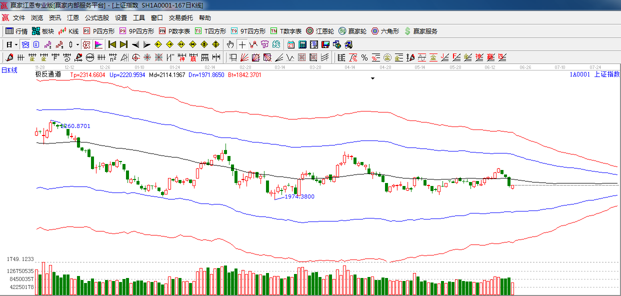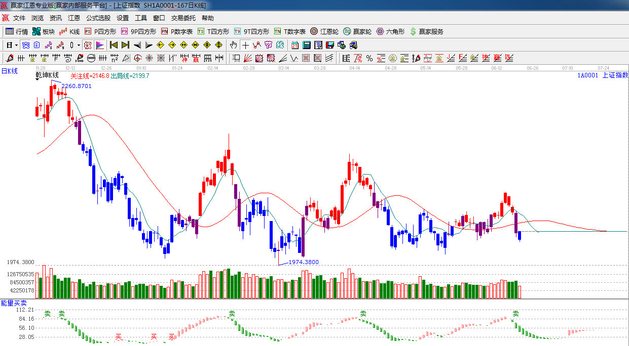 ☆依據(jù)贏家江恩系統(tǒng)極反通道提示:中陰線破位生命線,小陽線反抽,依然弱勢區(qū)域,看空。