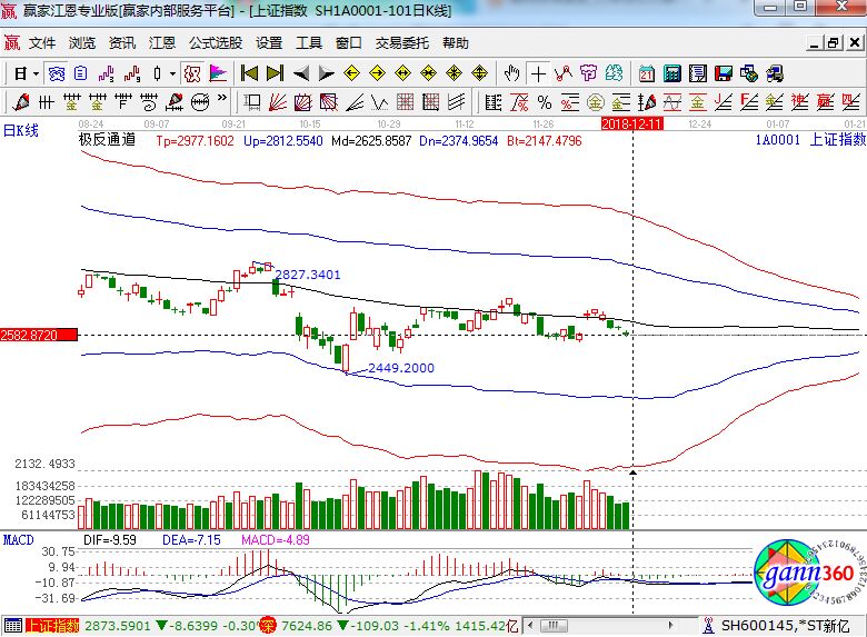 滬指跌0.82%,報(bào)收2584點(diǎn);深成指跌1.41%,報(bào)收7624點(diǎn);創(chuàng)業(yè)板跌1.06%,報(bào)收1326點(diǎn)。盤面上看,油改、5G、ST板塊、充電樁等板塊漲幅居前;高送轉(zhuǎn)、知識(shí)產(chǎn)權(quán)保護(hù)、軍工、生物醫(yī)藥、雄安新區(qū)等板塊跌幅居前。滬股通凈流出15億,深股通凈流入4000萬。相應(yīng)的極反通道指標(biāo)的支撐壓力提示,如下圖所示: