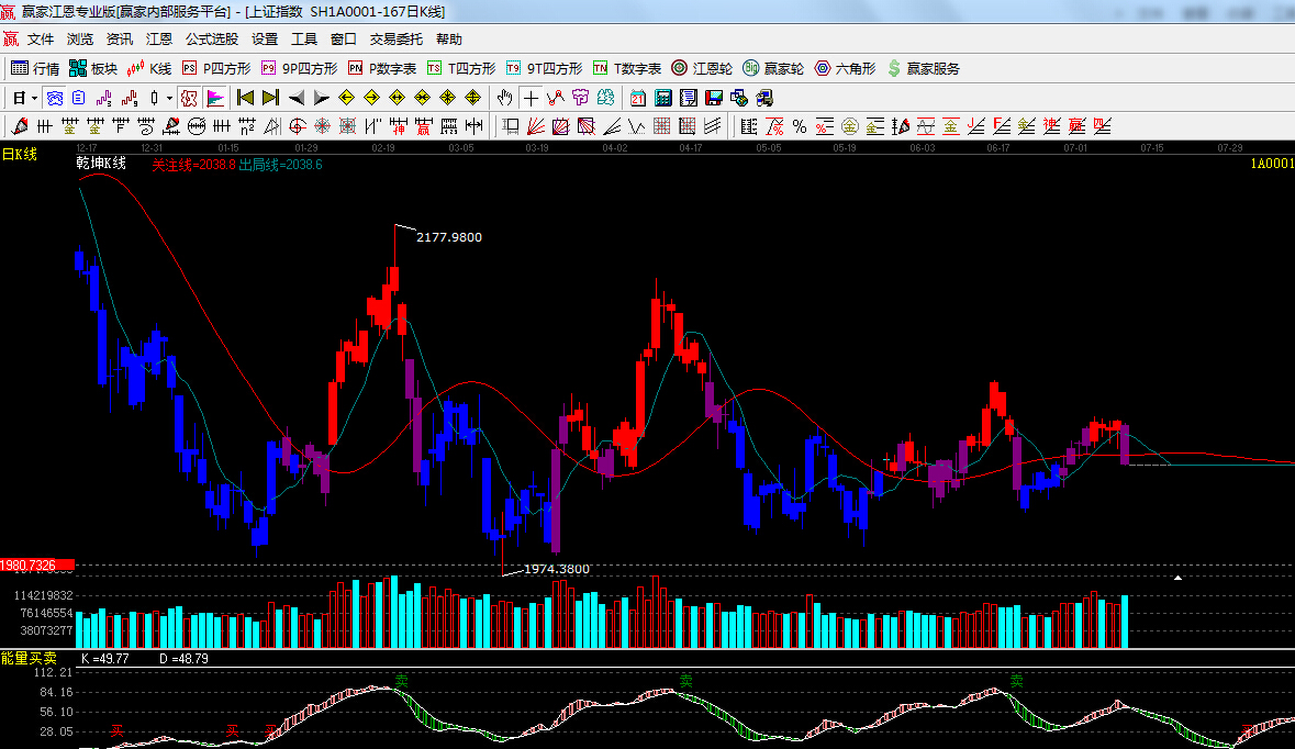 ★依據(jù)贏家江恩系統(tǒng)乾坤K線提示: k線顏色轉換為紫色,明天收盤如不在紅色關注線上則轉為弱勢休息區(qū);
