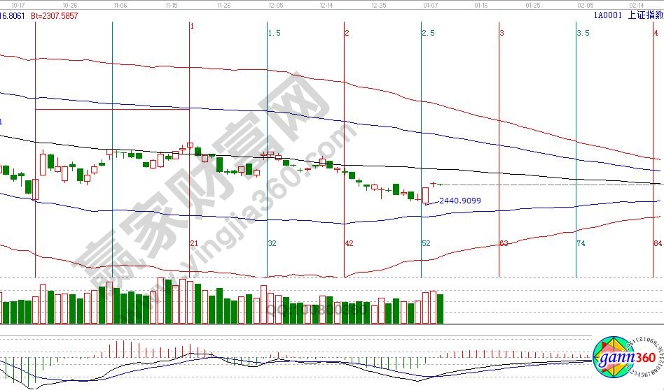 大盤日K線連續(xù)兩天窄幅震蕩,短期橫盤進入方向選擇期,目前依然處于2400點反彈周期內(nèi),9號江恩價格四方形提示,第一支撐45度2516點,第一壓力0度2547點,時間窗口,1月15日、23號為日線時間窗口。操作策略,大盤日線未收復(fù)生命線前波段休息,短線當(dāng)前處于上漲周期,盤中遇壓力短線高拋,15分鐘生命線2516附近不破,短線逢低做多,本輪短線反彈底線是2478點不破,高度為日線生命線2585附近。