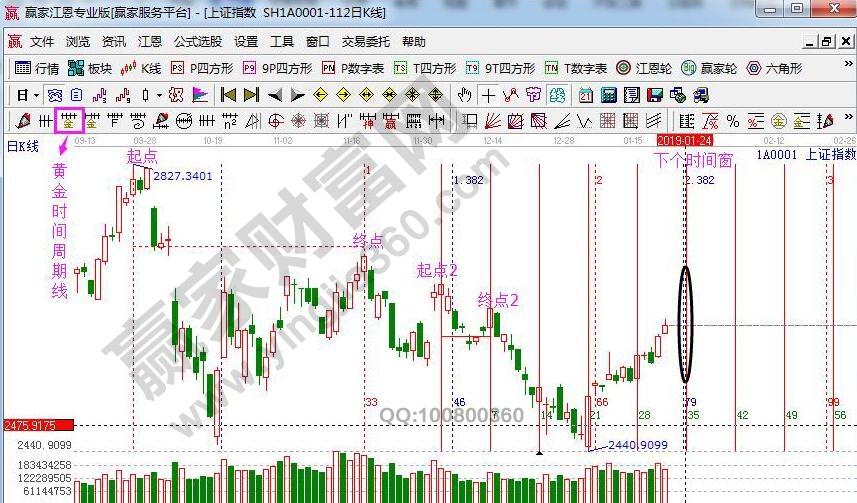 ☆依據(jù)贏家江恩理論系統(tǒng)黃金時(shí)間周期線提示:以最近兩組高高點(diǎn)做圖,第一組(2827和2703),第二組是(2666和2645)做黃金時(shí)間周期線,下個(gè)時(shí)間窗口1月23、24號(hào)。