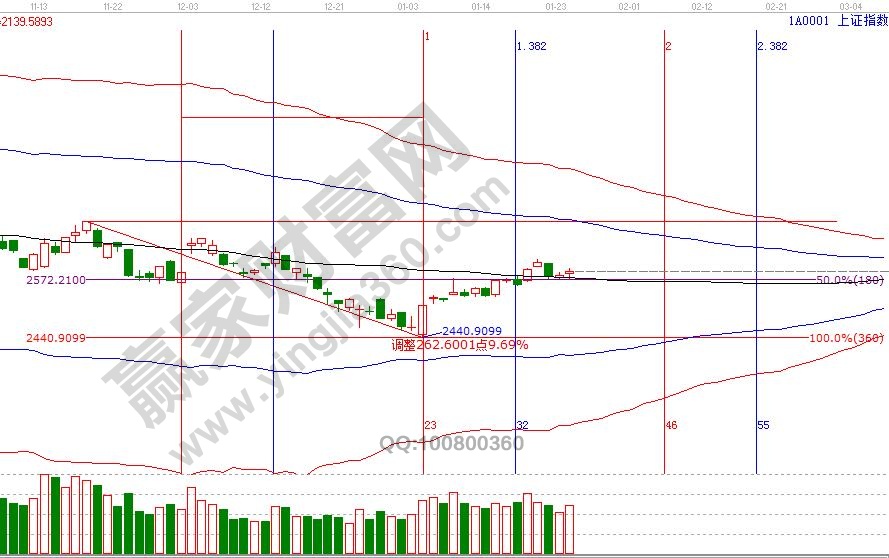 大盤延續(xù)圍繞黑色生命線2578點(diǎn)震蕩,從時間與量能配合上判斷,橫盤震蕩轉(zhuǎn)強(qiáng)的信號增強(qiáng),出現(xiàn)放量陽線預(yù)示市場將震蕩上行,按規(guī)則站穩(wěn)一線看高一線,2440點(diǎn)反彈第二個目標(biāo)是藍(lán)色上軌線2670附近??臻g方面,江恩四方形提示,25號支撐是2579點(diǎn),2607、2635點(diǎn)是盤中阻力,下個時間窗口是下周二29號。操作策略,大盤日線生命線上震蕩逐漸轉(zhuǎn)強(qiáng),線上重個股輕大盤,倉位保持在3-5成。