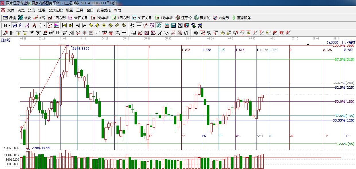 ☆依據(jù)贏家江恩系統(tǒng)黃金時(shí)間周期線(xiàn)提示:上周提示時(shí)間窗口為7月11日,14日,本周關(guān)注17號(hào)。