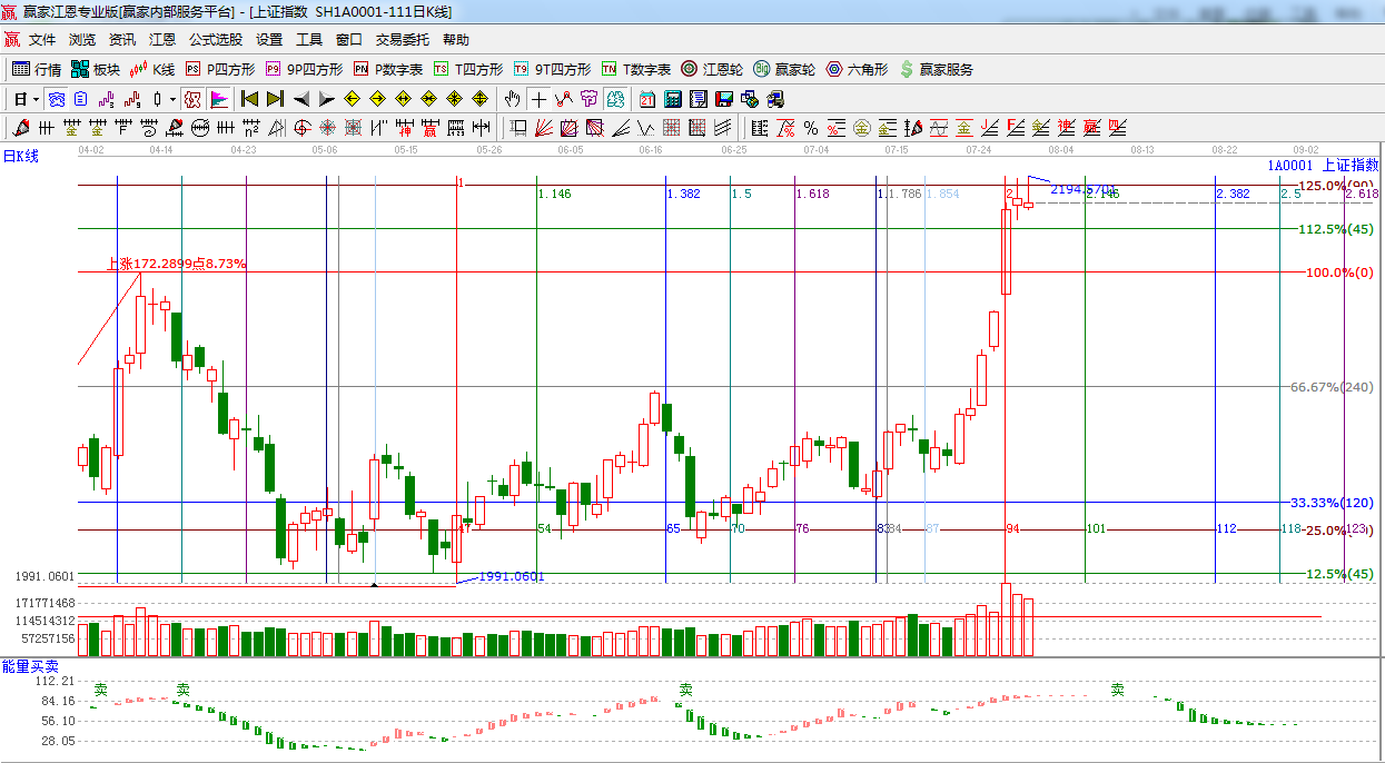江恩看盤綜述:依據(jù)贏家江恩技術(shù)工具分析得出:指數(shù)繼續(xù)圍繞外軌阻力線震蕩,金融,地產(chǎn)板塊的回落,遏制了大盤的上漲,預(yù)計(jì)短期指數(shù)將沖高震蕩回落,操作上,合理控制倉(cāng)位,做好高拋低吸。