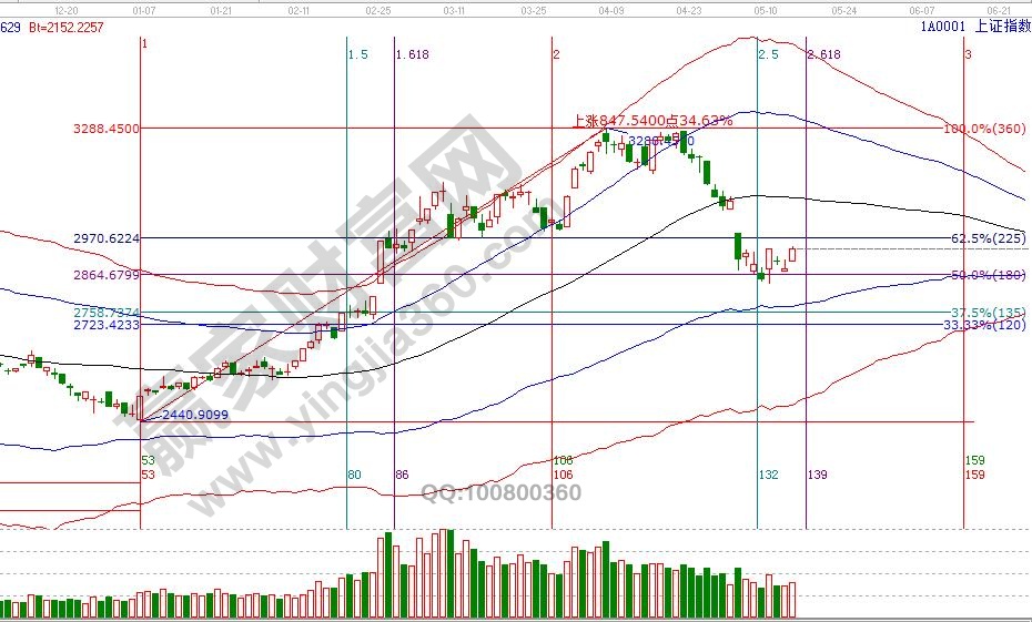 大盤自5月第一個(gè)江恩時(shí)間窗口8號、9號,與江恩價(jià)格形成時(shí)價(jià)四方信號,按預(yù)判短線反彈已展開一周,同樣參與者也收到利潤回報(bào)。通過贏家江恩分析體系判斷,短線動(dòng)作還能延續(xù),隨著時(shí)間5月第二個(gè)時(shí)間窗口17號臨近,需要關(guān)注波段百分比延伸線2倍零度位2966點(diǎn)反壓力,此線附近會(huì)有反復(fù),獲利豐厚者可以選擇高拋部分籌碼,待確認(rèn)反彈延續(xù)性后再度參與。首次關(guān)注贏家江恩的學(xué)員可查看歷史,4月22號盤后大勢分析提醒倉位降至3成,4月25號低風(fēng)險(xiǎn)者可以空倉休息,5月8號開始再度進(jìn)場,規(guī)避風(fēng)險(xiǎn)參與反彈,皆是通過贏家江恩體投資系判斷。16號盤中支撐是135度2911點(diǎn),盤中壓力270度2961點(diǎn),本周五17號是5月第二個(gè)時(shí)間窗口。操作策略,指數(shù)擊破黑色生命線進(jìn)入弱勢區(qū)域,目前處于短線反彈周期,高風(fēng)險(xiǎn)者倉位3-4成,低風(fēng)險(xiǎn)者等待中期參考位。