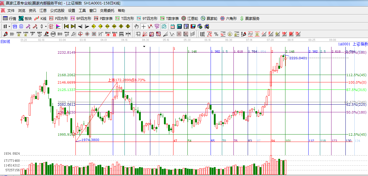 江恩看盤綜述:依據(jù)贏家江恩技術(shù)工具分析得出:權(quán)重股回落,創(chuàng)業(yè)板,中小板反彈,指數(shù)在極反通道外軌阻力附近探底回升,上方阻力180度位置2232附近,預(yù)計(jì)短期繼續(xù)維持高位震蕩走勢。 操作上,合理控制倉位,做好高拋低吸。