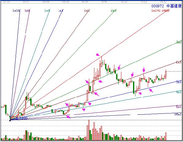 甘氏線雖然常見,但是不是所有人都可以用好,這是因?yàn)檫@僅僅是江恩的比較獨(dú)特的工具之一,使用甘氏線還是要完全理解江恩理論的思想,在實(shí)戰(zhàn)中才能發(fā)揮出來他應(yīng)用的作用,不然就是套工具罷了。贏家江恩軟件中甘氏線的有兩組,對(duì)于甘氏線的研究更是貼近江恩當(dāng)年的使用,有興趣大家可以多多學(xué)習(xí)一下江恩角度線欄目的文章或者學(xué)習(xí)關(guān)于江恩角度線的視頻講解。分享一張關(guān)于中基健康的贏家江恩軟件甘氏線分析圖形,供大家學(xué)習(xí)。