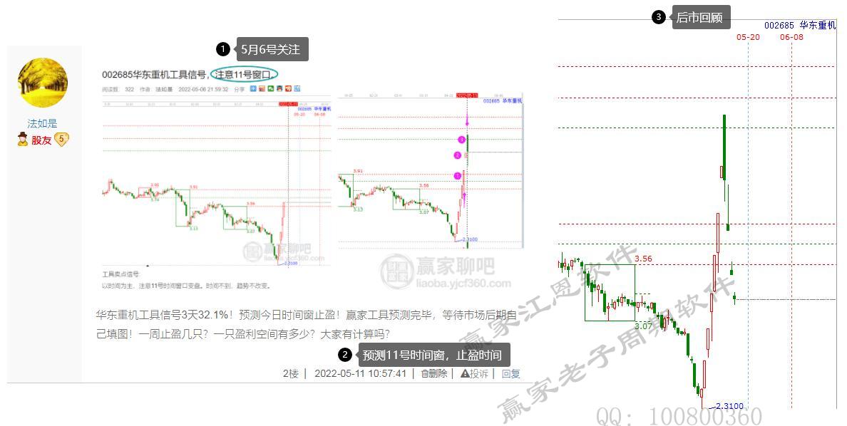 一、在市場(chǎng)當(dāng)中會(huì)買(mǎi)更要會(huì)賣(mài)!贏家的時(shí)間預(yù)測(cè)技術(shù)不止能確定買(mǎi)點(diǎn)信號(hào),更能決定賣(mài)點(diǎn)的規(guī)避信號(hào)!贏家聊吧:盤(pán)前預(yù)測(cè)、盤(pán)中跟隨、盤(pán)后回顧!上周跟蹤的華東重機(jī),止盈后,再次回顧迎來(lái)什么趨勢(shì)表現(xiàn)呢?論提前看得懂時(shí)間的重要性!