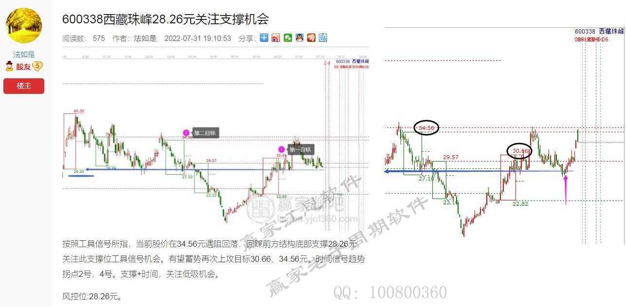 西藏珠峰依據(jù)江恩工具信號顯示,7月31日根據(jù)策略選出,買在支撐位28.26元,目標(biāo)看多30.66、34.56元。